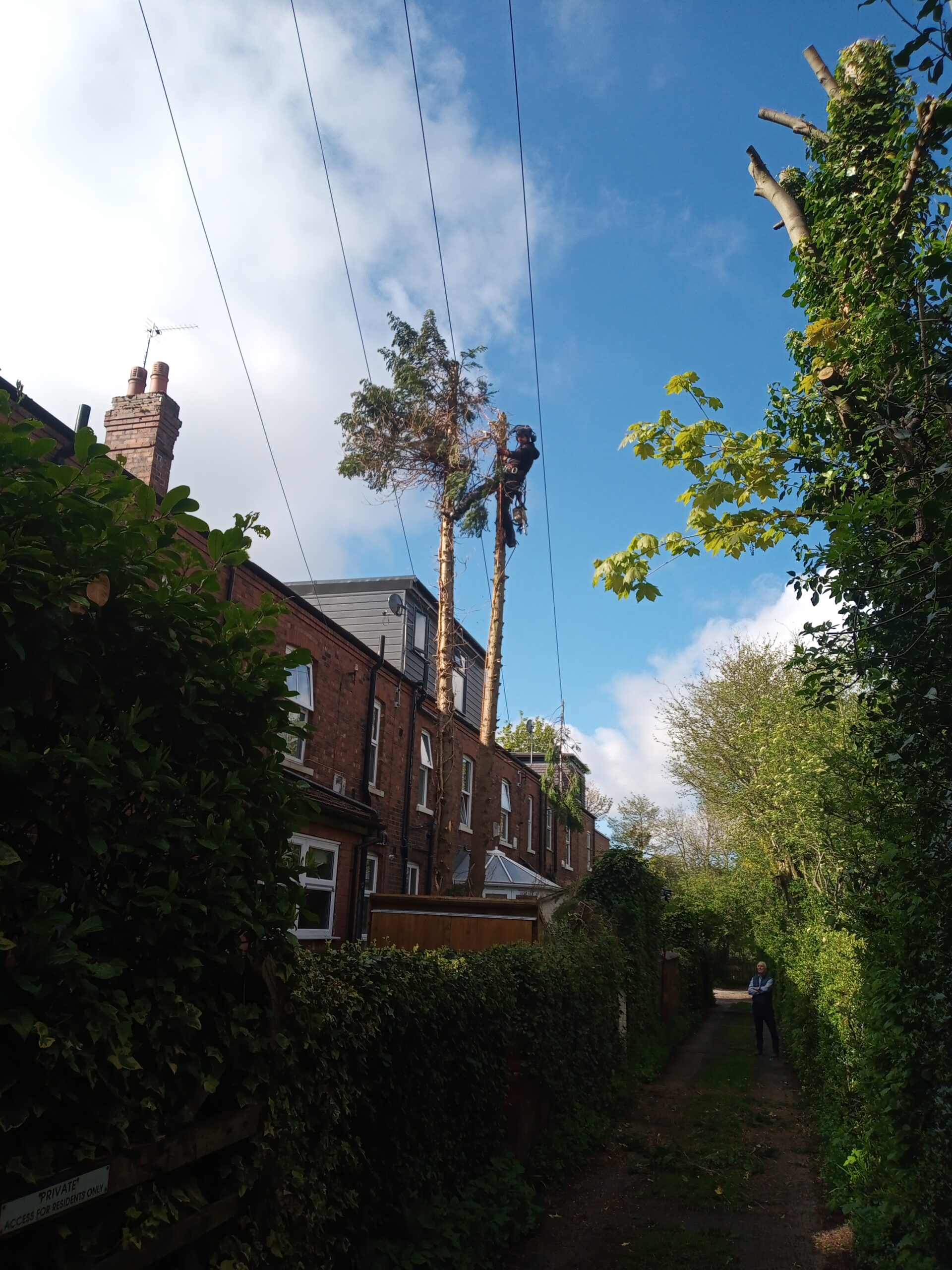 North Cheshire Forestry offer a bespoke tree removal service. From straightforward fells to more complex sectional felling in confined spaces, our fully insured service is always undertaken using industry best practices and state-of-the-art equipment. This is why we are the tree surgeon Oldham trusts for a professional tree removal service. Every tree removal is unique, and our vast experience allows us to take the safest and most efficient approach, minimising risk and cost to the customer.